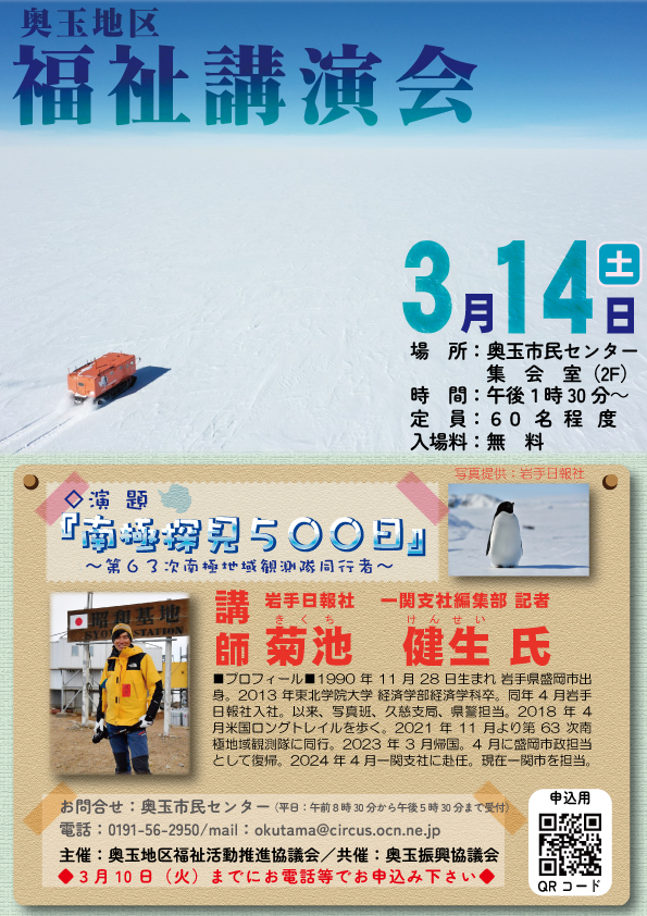 令和8年1月17日(土)午後2時~、マリアージュ(千厩町)を会場に開催します。会費は1人5,000円(*当日会場で申し受けます)。当日は、入山沢もちつき隊による餅つきと振舞い餅や、イベントの他お楽しみ抽選会もあります。是非、奥玉地区の新年を一緒にお祝いしましょう♪お申込みは奥玉市民センターまで、お電話もしくはFAXでお申し込みをお願い致します。《申込み期限1月9日(金)まで》