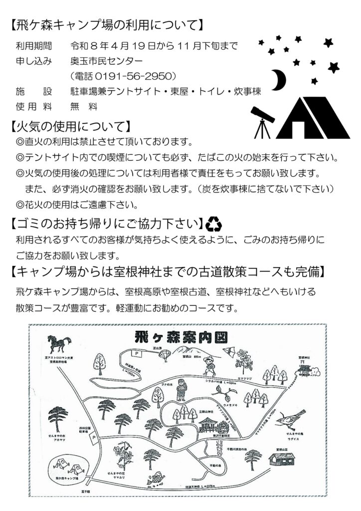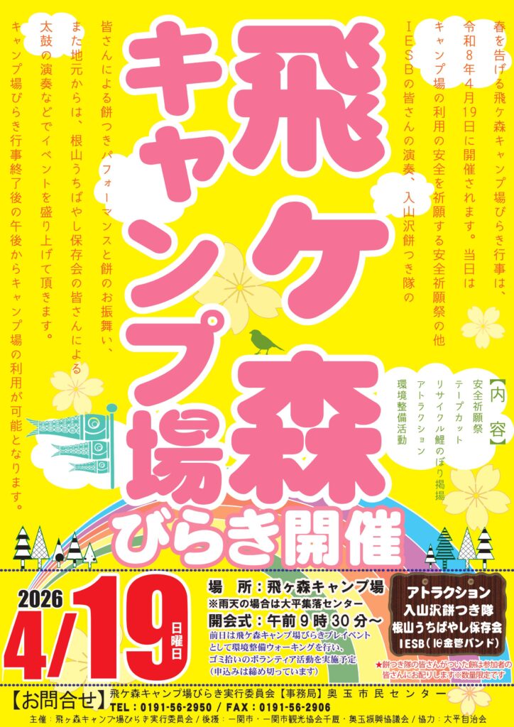 ■令和8年4月19日(日)飛ヶ森キャンプ場びらき オープン!
